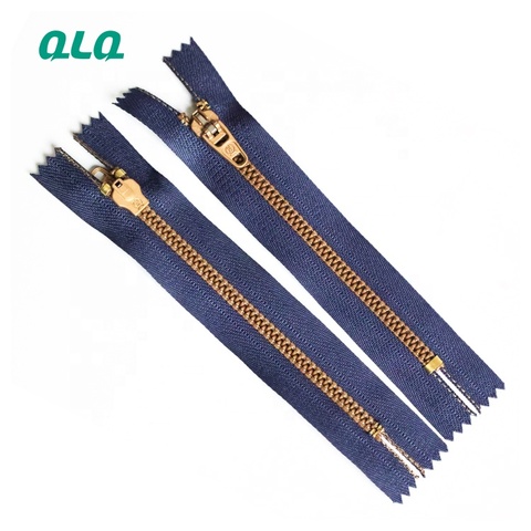Customised Size Color Weight Brass 3# Long Chain Gold Teeth Metal Zipper Rolls for Denim Jeans High Quality YG Slider Copper Zip
